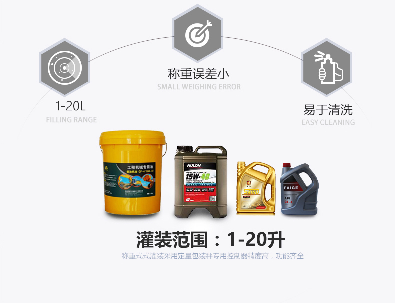 半自動(dòng)油脂灌裝機(jī)適合各種不同粘稠度的油脂油類,能兼容瓶型、桶型的灌裝,可用于潤(rùn)滑油、機(jī)油、花生油、食用油、大豆油、橄欖油等灌裝。